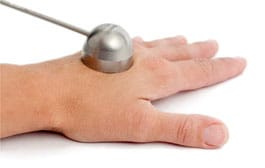 Die Rolle des Hautapplikators besteht darin, die Strahlenquelle während der “Strahlenabgabe“ an der richtigen Stelle über der Haut zu halten und die Strahlung auf andere nahe gelegene Bereiche zu reduzieren.